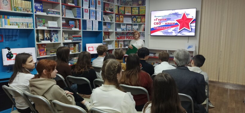В модельной детской библиотеке-филиале № 8 в рамках патриотического проекта «Я знаю! Я горжусь!» прошёл патриотический час «Герои нашего края», посвященный нашим землякам — участникам СВО.