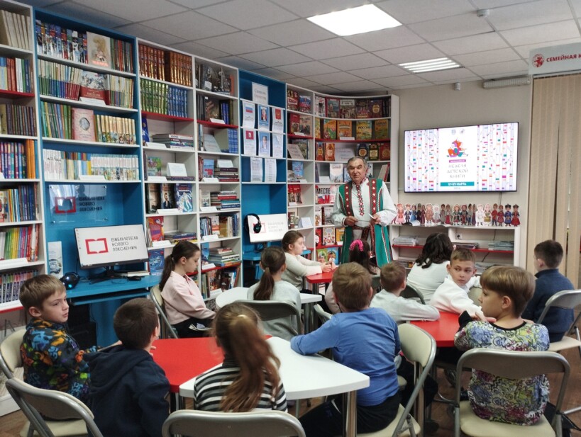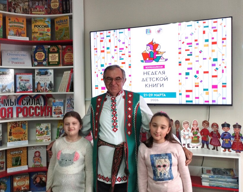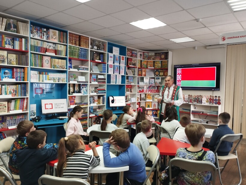 В неделю детской книги — 2026 в модельной детской библиотеке «Книгоморье» прошла встреча с представителем Севастопольского национально-культурного общества «Беларусь» Виктором Васильевичем Володько. Он рассказал ребятам о своей родине, государственных символах Республики Беларусь, её культуре, природе, особенностях национальной одежды и традициях белорусского народа.