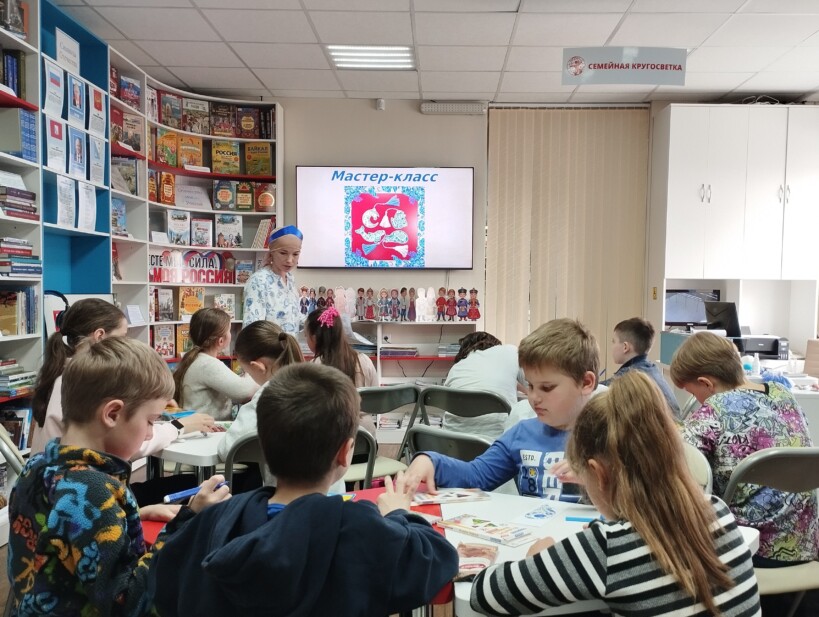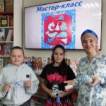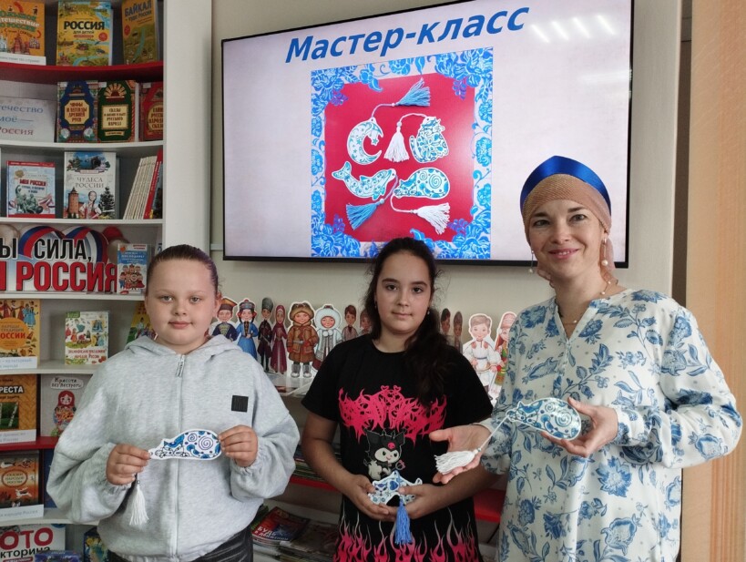 Библиотекарь Лидия Николаевна Вусик рассказала юным читателям о многообразии народных узоров и орнаментов, которые отражают культуру и обычаи русского народа. Подробнее остановилась на Гжели, росписи в синих и голубых тонах на белом фоне, и предложила ребятам сделать закладку для книг.