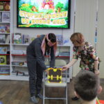 Библиотекарь предложила юным фантазёрам вспомнить старые добрые сказки. Передавая мяч друг другу, дети быстро называли сказочных героев, потом угадывали волшебные предметы из сказочного сундучка и называли сказку.