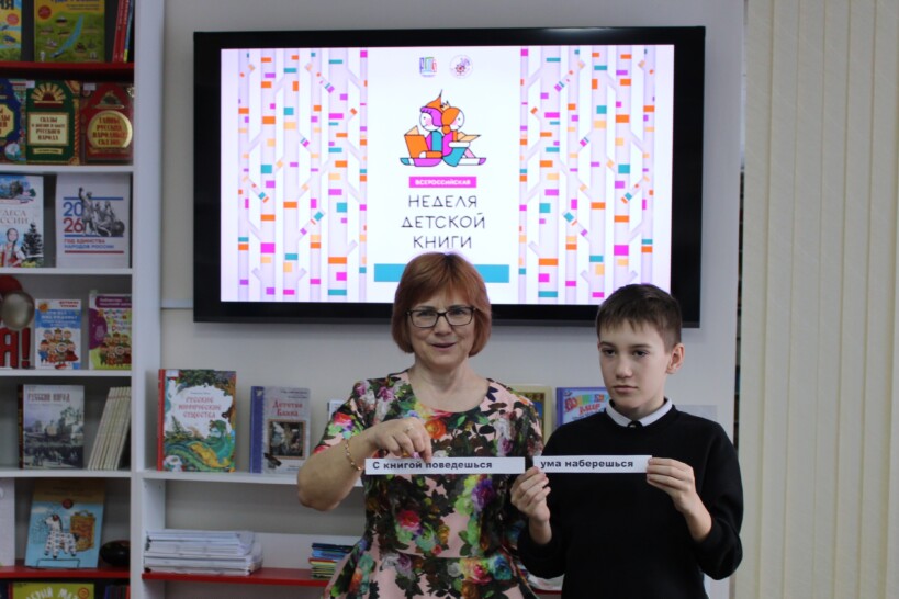В заключении мероприятия библиотекарь напомнила детям о том, что заканчивается Неделя детской книги и пожелала, чтобы их тяга к знаниям, которые можно получить из интересных книг, не исчезала. Ребята собрали из разрозненных частей пословицы о книгах, в которых заключена большая мудрость.