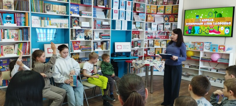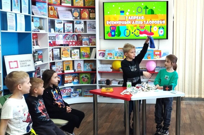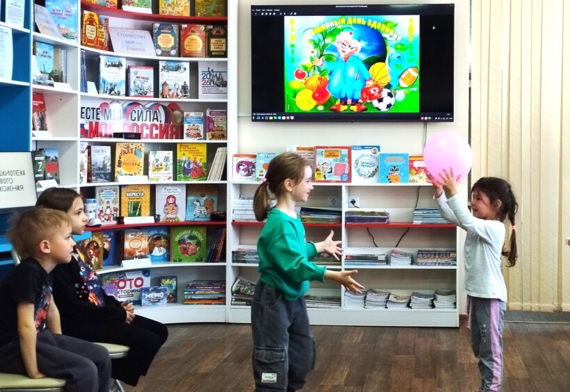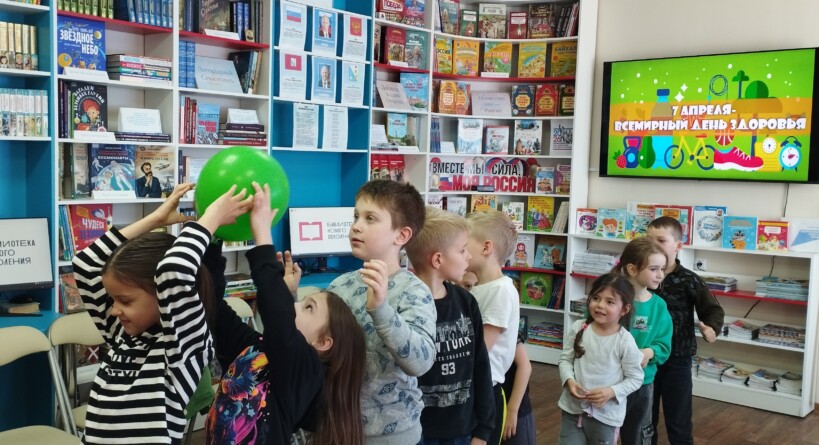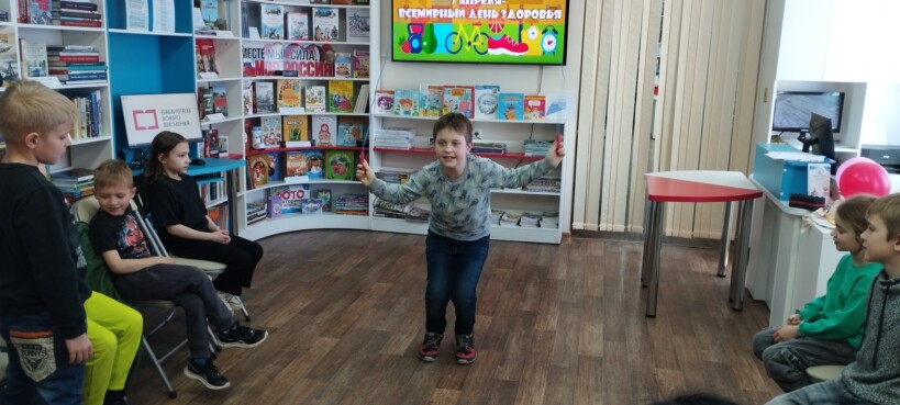 В рамках акции выходного дня «Во!Круг книг» в преддверии Всемирного дня здоровья в модельной детской библиотеке «Книгоморье» прошёл познавательно-игровой час «Скуку и безделье меняем на радость и веселье».