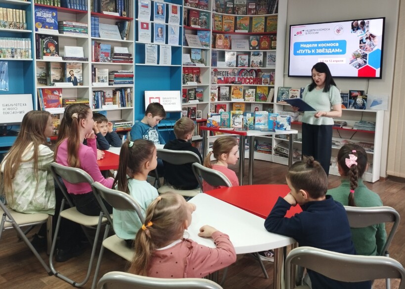 В неделю космоса «Путь к звёздам», в рамках акции выходного дня «Во!Круг книг» в модельной детской библиотеке «Книгоморье» прошла беседа «Звёздный сын планеты Земля».