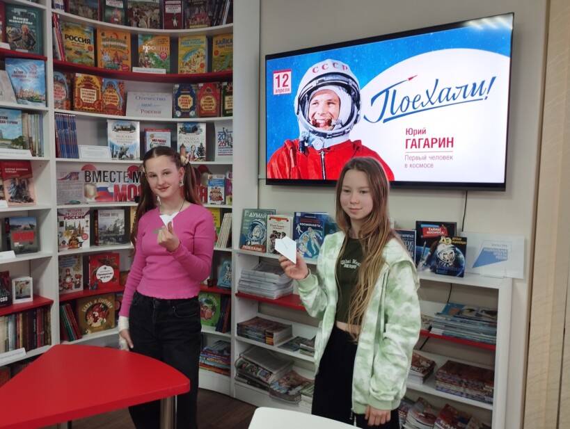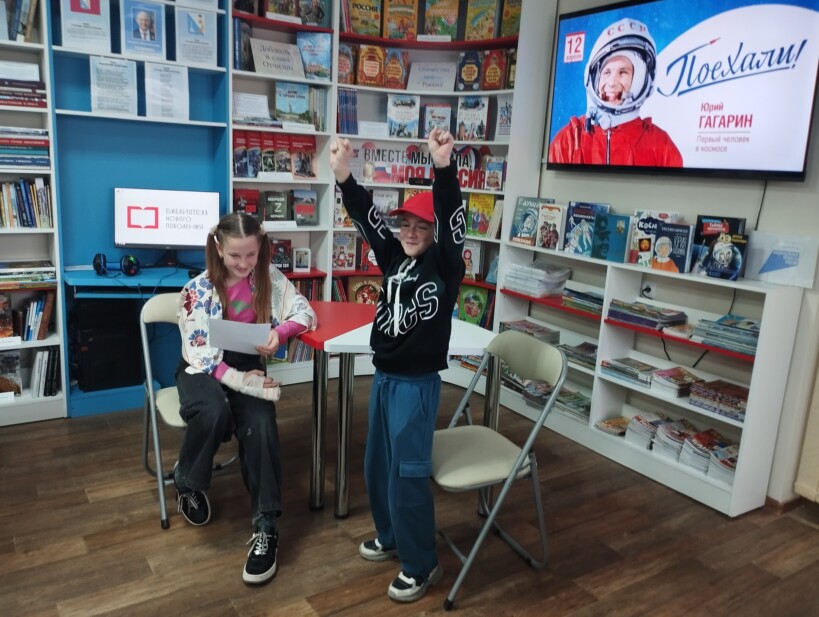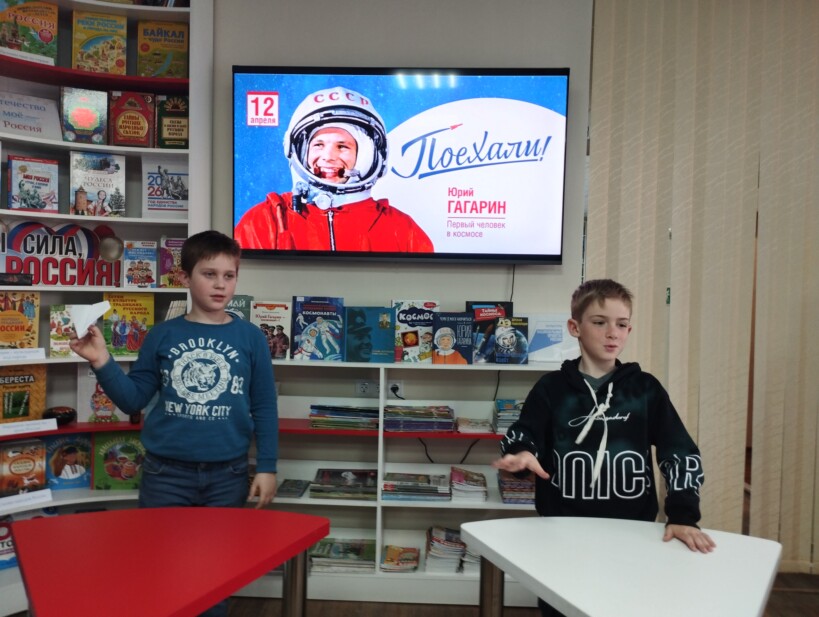 Встреча с читателями в этот день началась с небольшого экскурса в историю развития космонавтики. Был представлен видеоролик «Первый полет в космос». Ребята дружно вспомнили и назвали выдающихся русских ученых и космонавтов, совершивших открытия в космической науке: Юрий Гагарин, Герман Титов, Валентина Терешкова, Сергей Королёв, Константин Циолковский. С помощью презентации библиотекарь познакомила гостей с биографией первого космонавта Юрия Алексеевича Гагарина. Ребята узнали, когда и где родился Гагарин, о его семье, успехах в учебе, о безудержном стремлении с детства стать летчиком и совершать подвиги, которое в последствии воплотилось в жизнь.