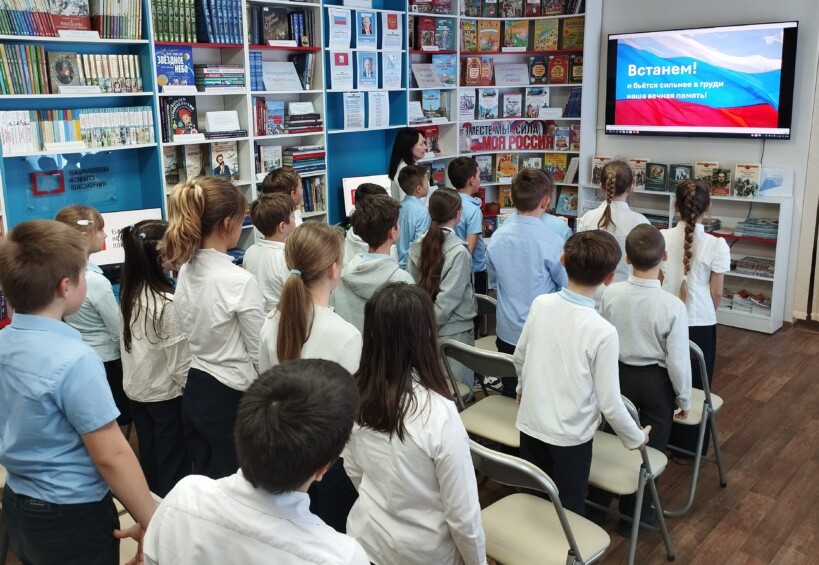 В завершении мероприятия присутствующие почтили память погибших героев минутой молчания. Библиотекарь обратилась с призывом к подрастающему поколению: любить свою Родину, гордиться ей и помнить имена героев своего Отечества.