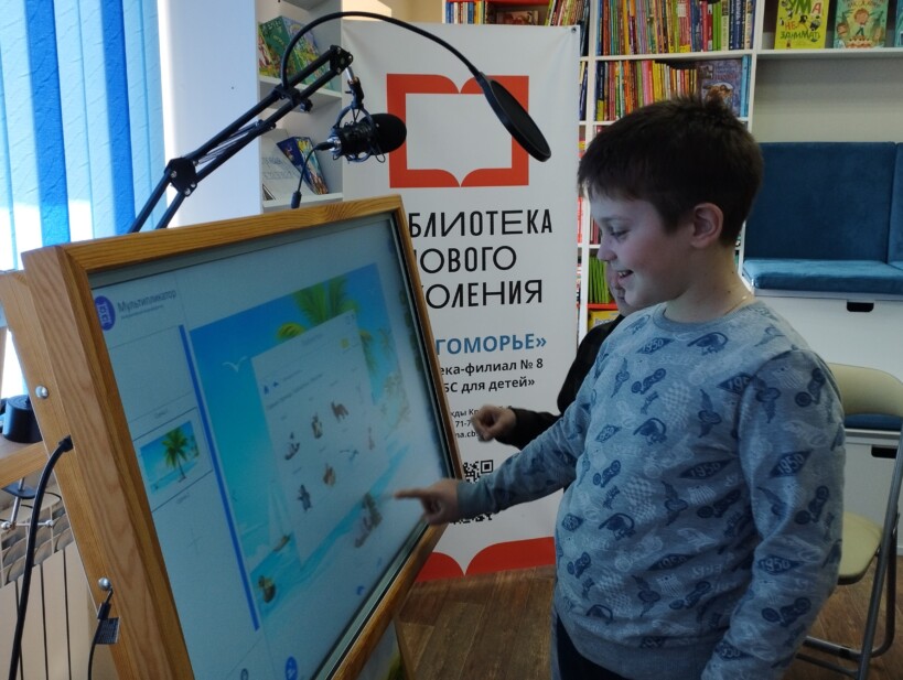 Затем библиотекарь предложила создать свой мультфильм. Вначале обсудили, о чём дети хотят снять мультфильмы, какие темы их волнуют. Выбрав фоны и героев из библиотеки творческой студии «Муза», ребята приступили к работе над мультиками. Они очень увлеклись процессом съёмки.
