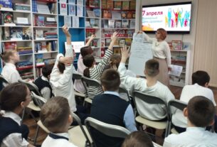 Об этом и других интересных фактах его жизни присутствующие узнали из презентации «Владимир Сутеев – удивительный сказочник». Продолжилось мероприятие викториной по произведениям В. Сутеева, которая показала, что дети хорошо знакомы с творчеством писателя. Шумно, легко и весело ребята справлялись с заданиями. Затем мальчишкам и девчонкам предложили посмотреть любимые мультфильмы и испытать себя в качестве иллюстраторов. Завершился час искусств театрализованной сценкой по сказке В. Сутеева «Кто сказал «Мяу»?». Уходили домой гости не с пустыми руками – с рисунками, книгами и хорошим настроением.