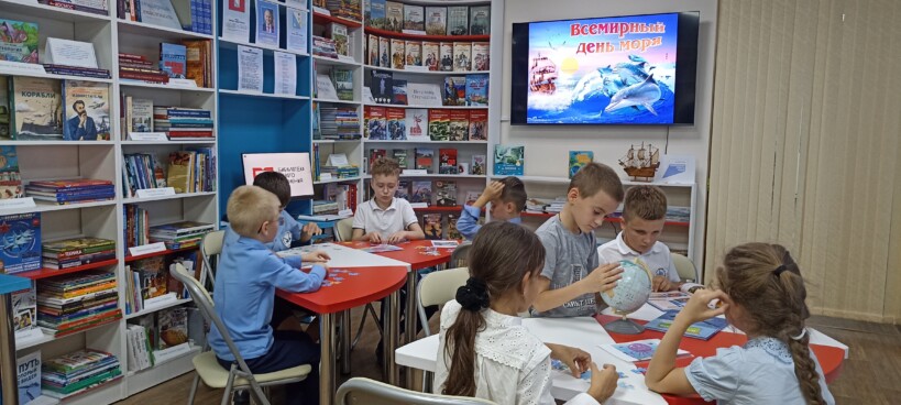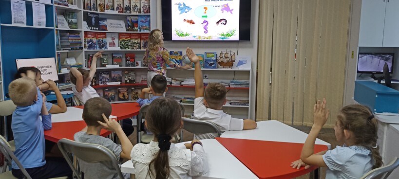 В модельной детской библиотеке «Книгоморье» для ребят группы продлённого дня прошёл экологический час «Вот оно какое море».