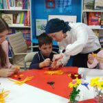 Библиотекарь активно помогала участникам, отвечала на вопросы и поддерживала тех, кто испытывал трудности. В результате получился небольшой, но яркий букет, который стал символом осени и творчества.
