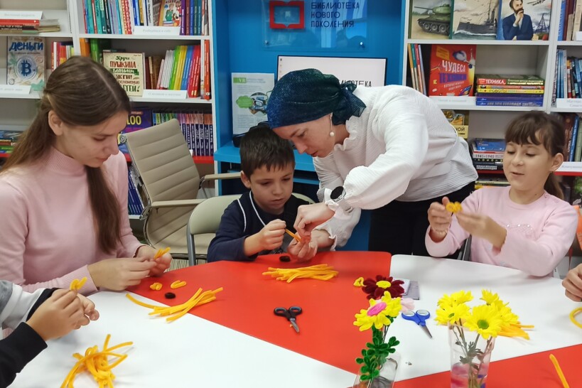 Под руководством библиотекаря дети научились правильно держать проволоку и работать с ней. Затем, следуя пошаговым инструкциям, они создали свои собственные хризантемы. Сначала из пушистой проволоки были сделаны лепестки и листья, которые затем были аккуратно склеены в красивый цветок. Завершающим этапом стало прикрепление ножки с листьями к бутону.
