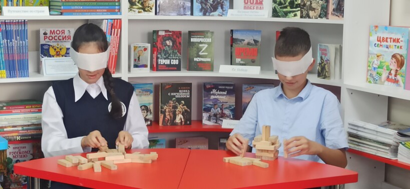 Для лучшего понимания трудностей, с которыми сталкиваются слепые люди, мальчики и девочки выполнили несколько заданий с плотной повязкой на глазах: строили домик из кубиков, проходили препятствия и рисовали картинки разноцветными карандашами. Эти упражнения помогли им почувствовать себя на месте тех, кто вынужден ориентироваться в пространстве без помощи зрения.