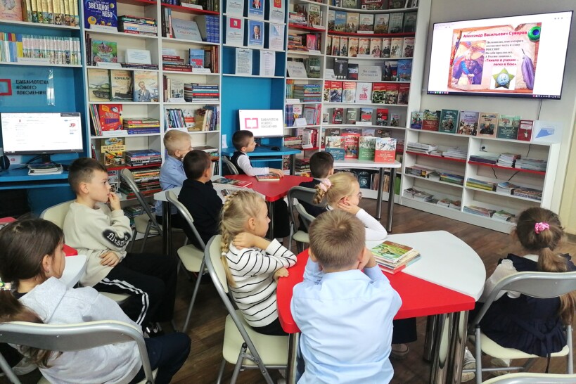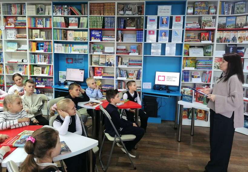 В модельной детской библиотеке «Книгоморье» в рамках часов «Zа Россию!» прошел патриотический час «Во славу Отечества: равнение на подвиг».