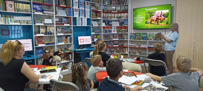 Дети узнали много интересного о палеонтологии — науке, изучающей ископаемые останки древних организмов, включая динозавров. Библиотекарь рассказал, как палеонтологи находят и анализируют кости динозавров, чтобы восстановить их облик и понять особенности жизни.