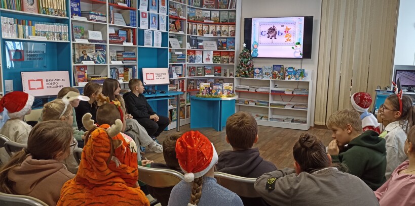 В преддверии Нового 2026 года для юных читателей модельной детской библиотеки «Книгоморье» прошла литературно-игровая программа «Новогоднее волшебство».