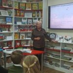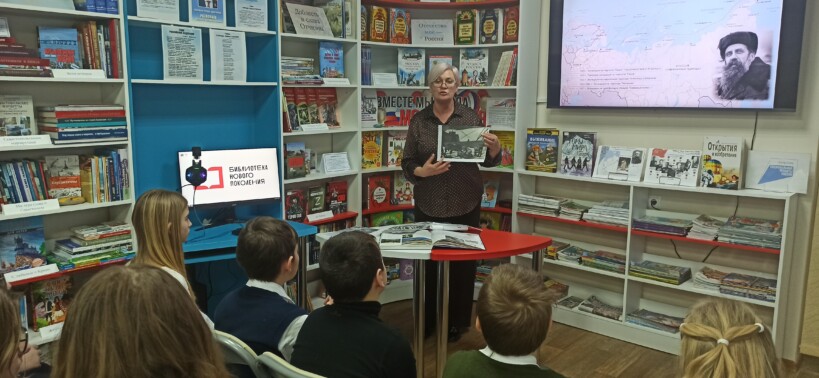 Библиотекарь рассказала ребятам о вкладе Отто Шмидта в изучение северных полярных территорий. Особое внимание было уделено Великой Северной экспедиции 1932 года на пароходе ледокольного типа «Сибиряков», которая впервые в истории совершила плавание по Северному морскому пути за одну навигацию. Также были обсуждены события знаменитой экспедиции на ледоколе «Челюскин», которая закончилась трагедией — гибелью судна и многодневным дрейфом экипажа на льдах.