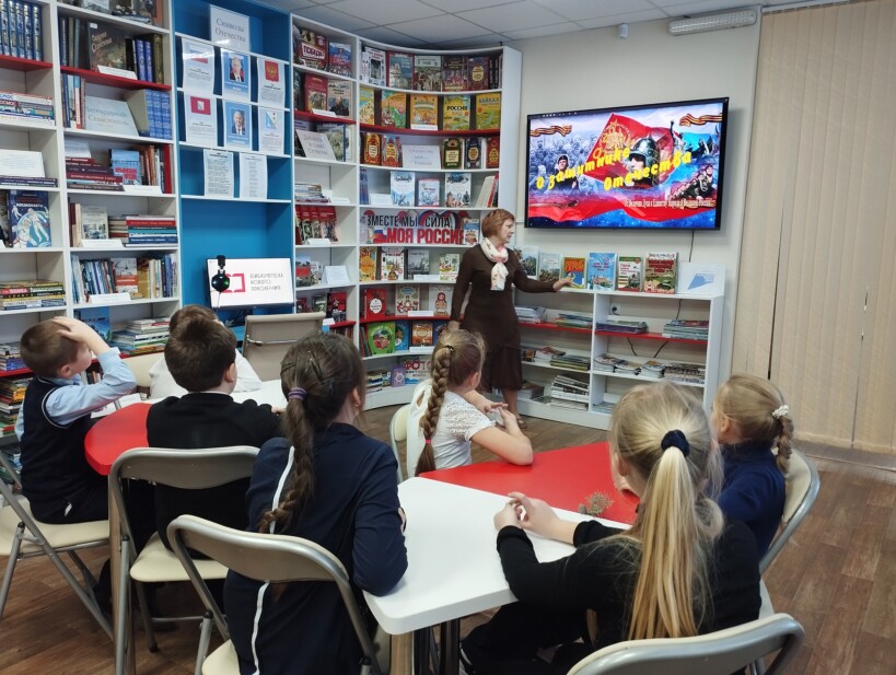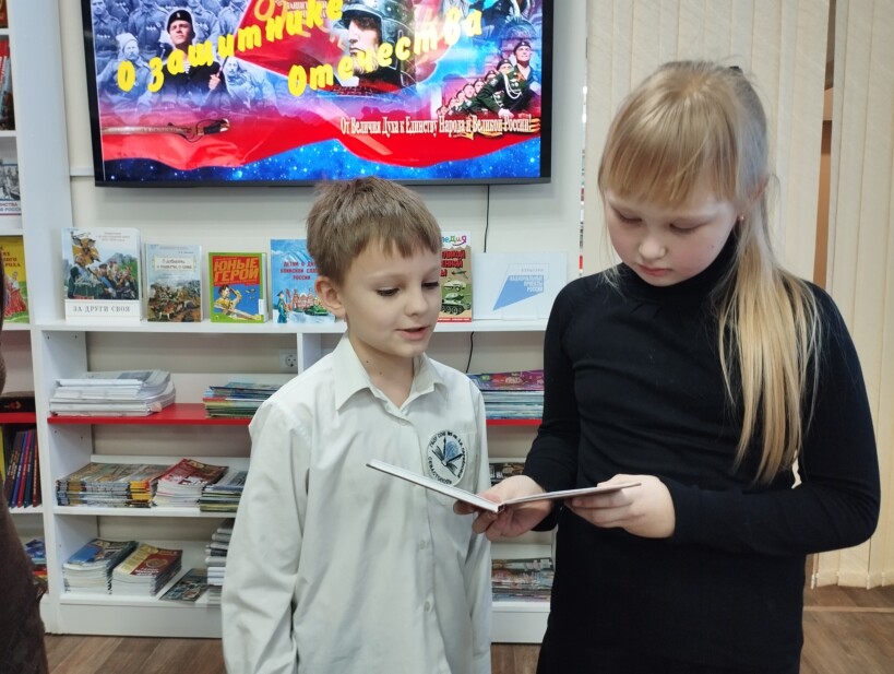 Юные читатели выполнили итерактивные задания «Защитники Отечества» и посмотрели книги с тематической полки «У Отчизны героев не счесть». Они сделали вывод, что быть защитником Родины — это великая честь и большая ответственность.