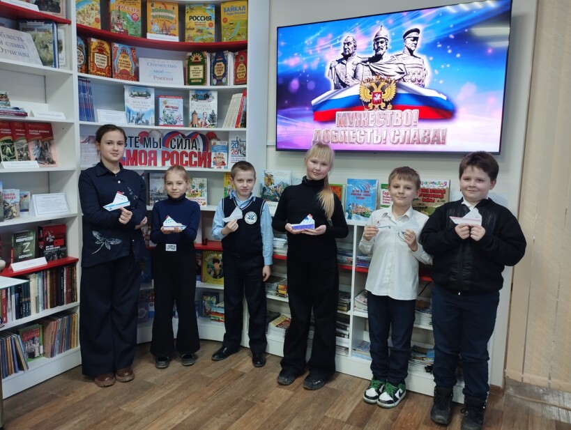 23 февраля отмечается в нашей стране День защитника Отечества. В этот день мы поздравляем тех, кто мужественно защищал родную землю от захватчиков, и тех, кто в мирное время выполняет свой воинский долг. В преддверии праздника в модельной детской библиотеке-филиале № 8 «Книгоморье» прошла беседа «Русский солдат умом и силою богат» для группы продлённого дня школы № 9 в рамках проекта «Я знаю! Я горжусь!» и акции «Есть такая профессия Родину защищать».