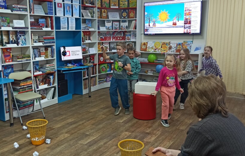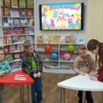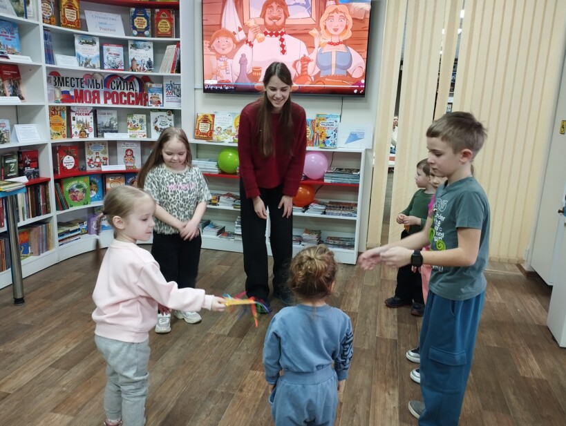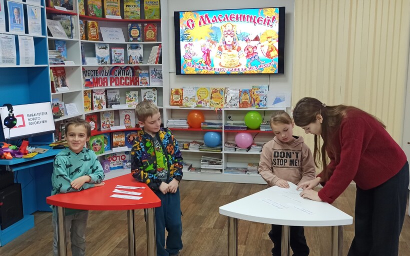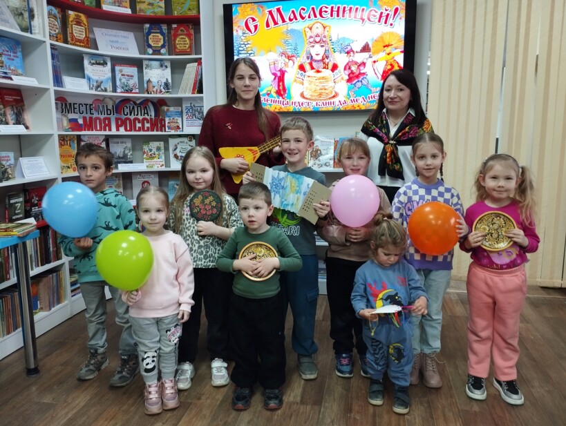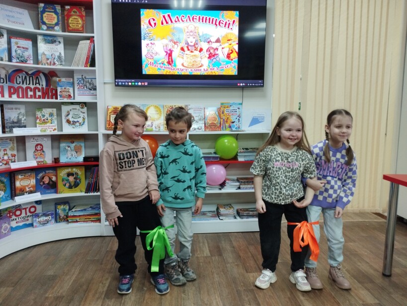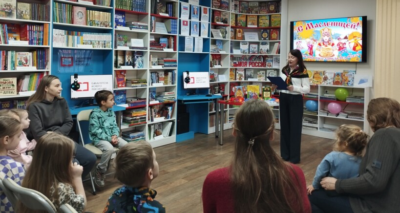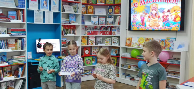 В воскресный день в рамках акции выходного дня «Во!Круг книг» модельная детская библиотека «Книгоморье» провела познавательно-игровой час «Масленица хороша – широка её душа».