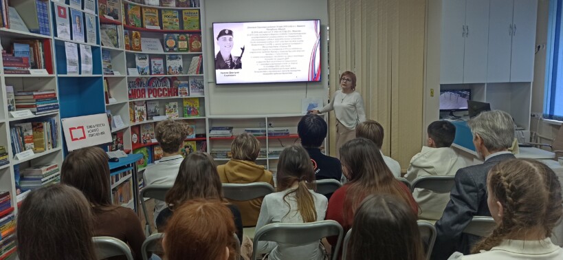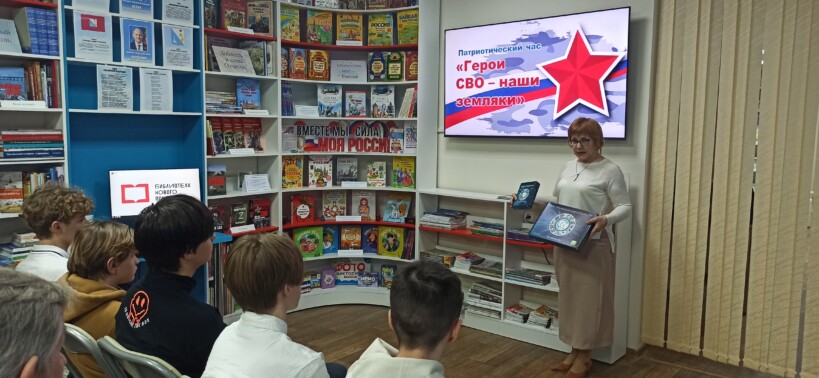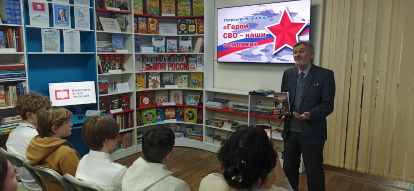 В модельной детской библиотеке-филиале № 8 в рамках патриотического проекта «Я знаю! Я горжусь!» прошёл патриотический час «Герои нашего края», посвященный нашим землякам — участникам СВО.